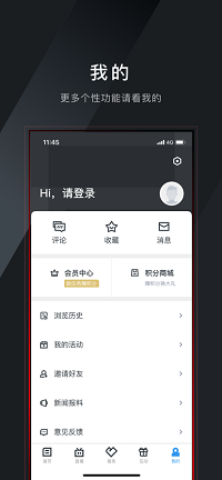 5、进入我的个人主页点击查看收藏内容,或点击进入积分商城里面赚积分并兑换礼品。