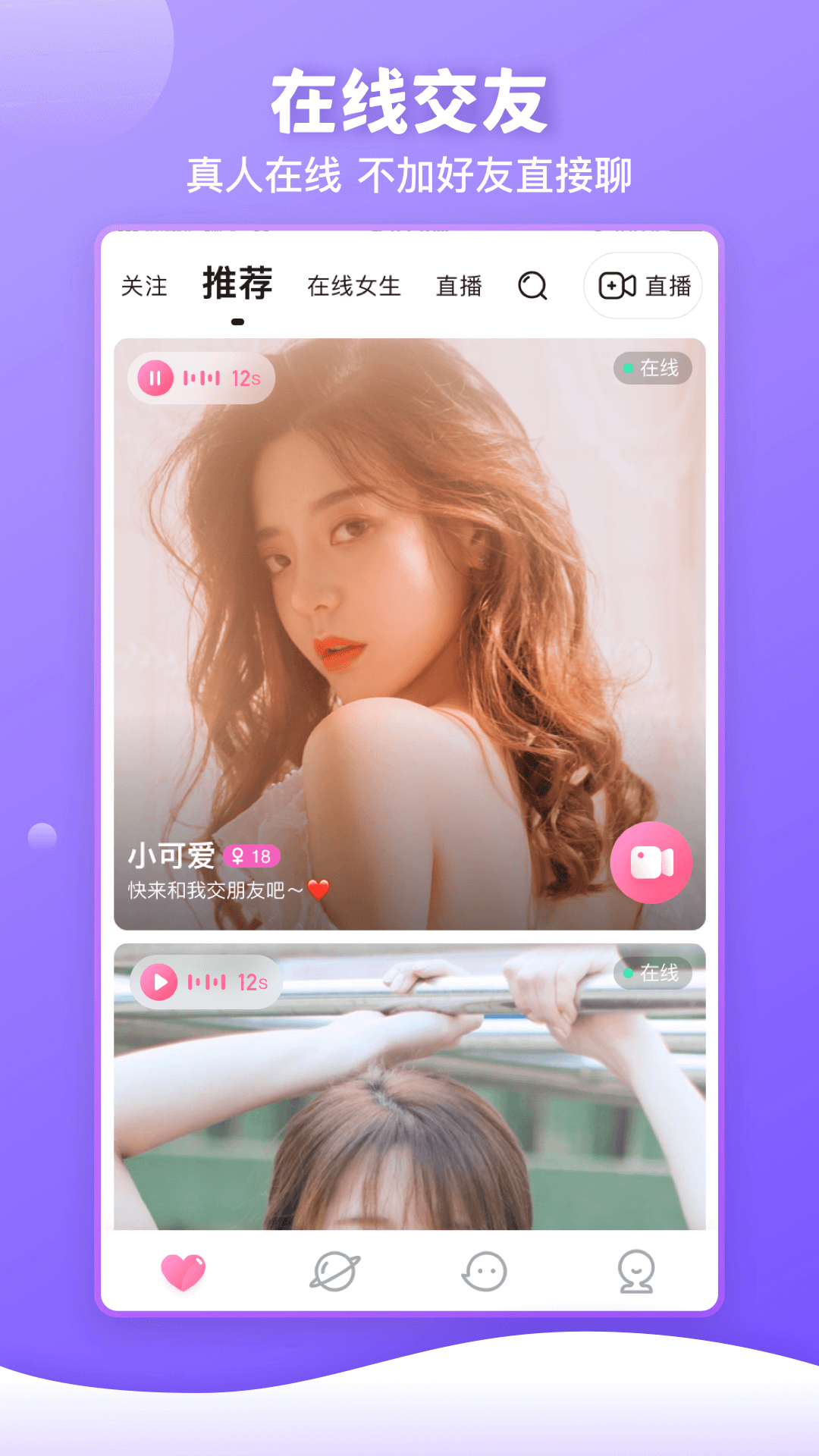 1、【速配交友】 自动推荐优质单身男女,不用加好友,在线可撩;