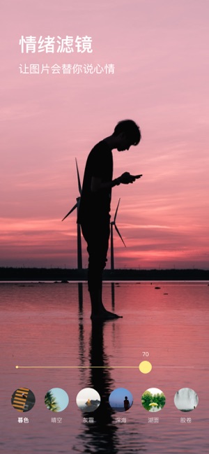 2、帮助用户通过图片来表达自己心情,还有很多的滤镜免费提供给用户使用。