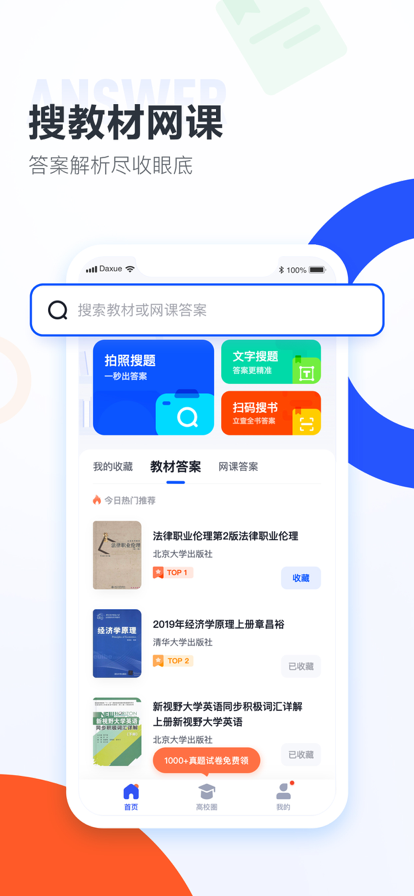 2、搜题快:支持拍照搜题、文本搜题、扫码搜书等多种搜索方式,一拍一扫,秒出题目和答案。