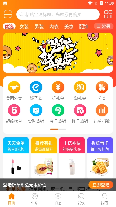 一款全新的购物平台,给你提供了超多的优惠券,领券下单更优惠,把你觉得软件上很好的商品分享给同事朋友,还可以赚取一定的奖励。
