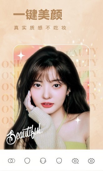 1、一键美颜:一键让你的肌肤瞬间完美无暇!傻瓜式操作,七个美颜级别,量身打造你的美丽!