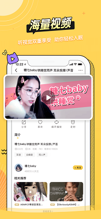 2、 汇集国内、韩国、日本、欧美等地域ASMR主播,风格各异形式多样应有尽有包含角色扮演、耳语、咀嚼等。