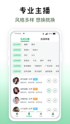 2、真人成品录音:海量真人成品录音可直接导出,风格多样,效果震撼。
