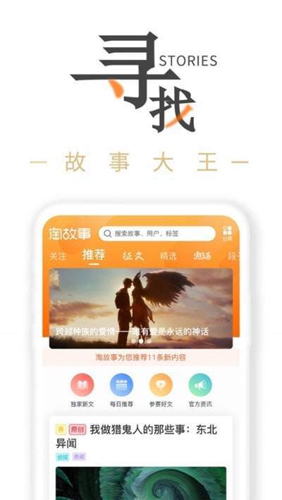 1、淘故事app特约职业撰稿人提供最新故事,你听说过的和没听说过的,一网打尽。
