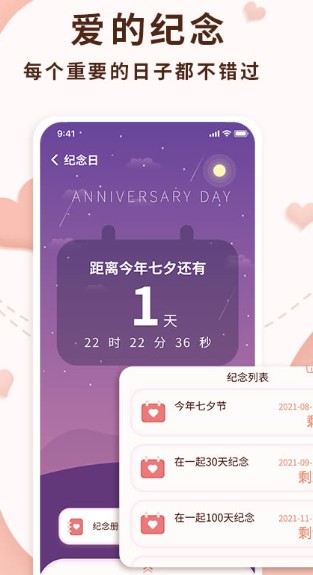1、可以将第一次看电影,第一次拥抱,第一次逛街等重要纪念日一键记录。