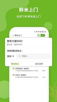 2、对于附近有社区运营模式的用户可以看到附近最近的各种分售点,直接前往门店也可以更快的完成购买米类商品的过程。