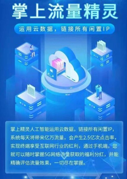 1、利用人工智能云数据连接所有空闲IP为用户带来流量的软件。