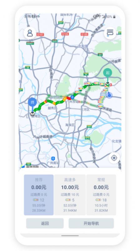 1、行车计费工具,设置起步价、里程费用,即可开始计费和导航;