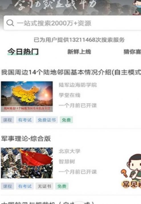 3、军事特色课程,精选军地通用特色课程,满足军迷和官兵学习需要。