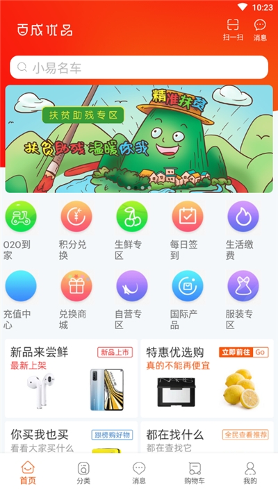 2、所有的产品都有进行分类,拥有生鲜区、服装区、电子产品等多个分区,找东西更加的方便了。