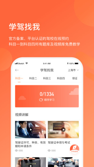 3、【驾培服务】免费学习科一到科四题库、视频库及领证指引,在线查询驾校信息。