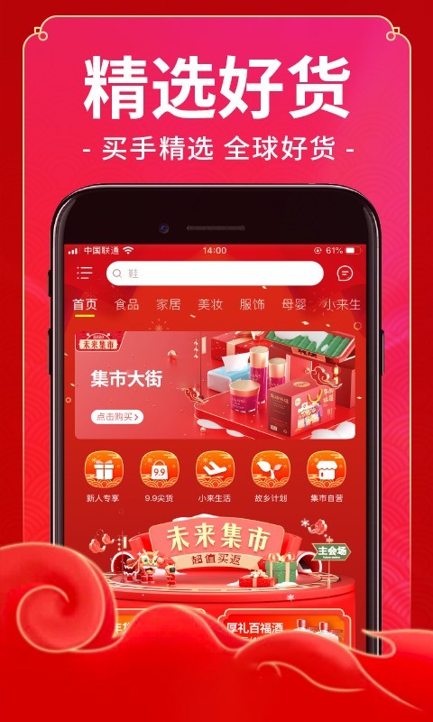 1、未来集市打破了传统的电商模式,通过社交电商满足用户需求。
