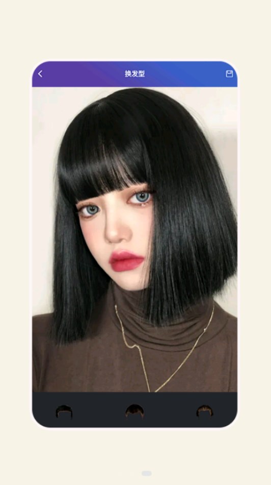 2、轻松点击,一键切换,根据脸型、额头大小等设计适合发型;