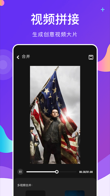 1、视频拼接,生成创意视频大片,视频的效果丰富多样,手机进行拼接更加方便。
