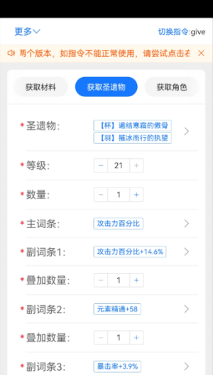 原神指令生成器app是一款功能丰富多样的游戏辅助软件,帮助用户在游戏过程中可以获得各种角色,圣遗物装备,快速修改游戏的数值,体验更多需要时间才能得到的东西,畅快体验,操作简单好上手,输入指令就可以修改,全部功能都是免费使用的,感兴趣的来下载试试吧。
