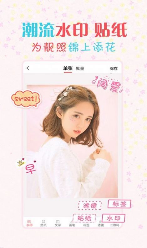 1、丰富的水印类型:拥有特色、心情、人像等7大类百余款水印;