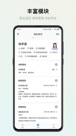 很多精美的简历模板,简历制作可以一键切换,方便快捷。