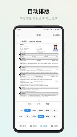 可以调整任何模板的版面,一键生成简洁大方的简历。
