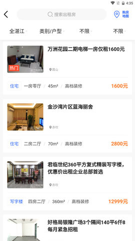 湛江购房网app是一款专门为湛江用户服务的房屋买卖租赁平台,在线为用户推送湛江的所有房源信息,无论是买卖房子还是租赁都可以满足用户,详细全面的房源信息,图片价格真实可靠,还有相应的历史价格趋势可以查看,对于各种价格的趋势,了解更对二手房和租赁其他类型的房子,感兴趣的来下载试试吧。