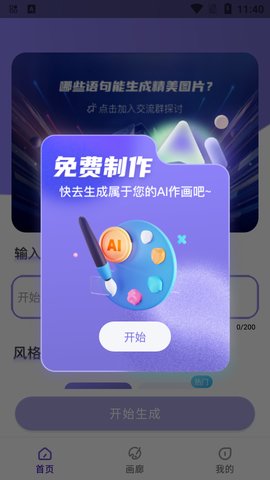 1、输入关键字。APP中的AI技术可以帮助你的想象力将枯燥的关键词瞬间转化为创意绘画。