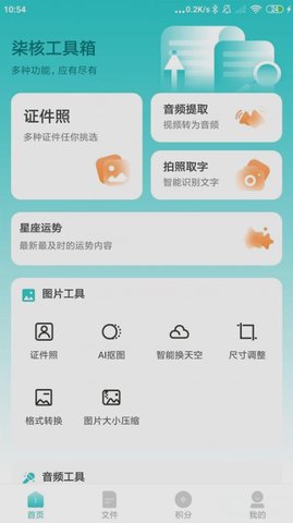 柒核工具箱app是一款非常好用的工具箱软件,功能非常强大,有许多常见的工具,如身份证照片、AI遮光、智能天空变换和尺寸调整等满足用户多方面的需求,界面UI设计精美,易于操作,所有功能都是免费试用的,没有任何广告弹窗的打扰,感兴趣的来下载试试吧。