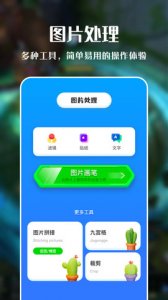 2、还提供了非常全面的图像处理工具,各种有趣的滤镜,贴纸等,可以随时美化;
