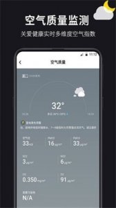 1、当天天气:显示当天的实时天气状态、天气、温度、风速、气压、湿度等。