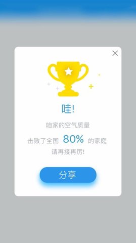 1、一键快速分享您的家庭空气质量,让更多人了解您的生活环境,提高生活质量;