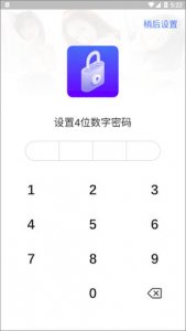 1、私人相册管家的私密性非常强,在进入软件前就会要求用户设置密码,如果您暂时不想设置,点击右上角的“稍后设置”即可;