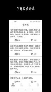 宇辉说app是一款非常好用的文章句子平台软件,用户可以通过平台找到非常多的经典语录和句子,在线学习和收集,各种精美的文章,享受知识的海洋,找到并收集与你产生共鸣的词汇,丰富自己的写作,非常便捷实用,有需求的来下载试试吧。