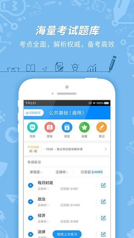 公务员考试宝典app是一款非常专业的题库练习软件,在线为用户提供近几年的各种题库试题,按照知识点分类,涵盖行测所有知识点,每天按照计划进行学习练习,助你轻松提升实力,查看备考指南,了解考试的所有信息,以便高效报考,非常便捷人性化,有需求的不要错过。