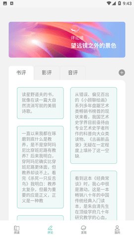 3、书评、影评和音频评论是体验新体验的三种主要方式。