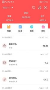 2、预算管理:设置预算后,实时更新和显示剩余预算,并计划收支。