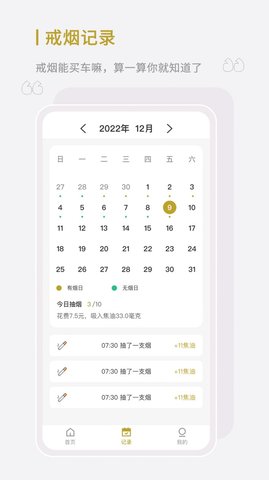 3、让你记录自己的戒烟进度,让你可以随时查看自己的戒烟进度。