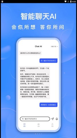 智能ai聊天助手app是一款非常不错的智能AI软件,功能非常强大,可以应用于多方面的使用,用户可以使用智能的AI聊天助手来帮助他们找到餐馆和预订电影票,这大大方便了他们的生活,文字可以转换成语音,让用户听到更自然的语音回答,还具有机器翻译功能,支持用户跨语言交流,提高了软件的实用性,感兴趣的来下载试试吧。