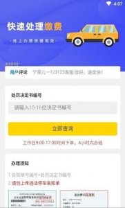 12121违章查询app是一款非常全面的违章查询软件,功能非常强大,用户可以通过该软件方便快捷地查询自己的车辆违章信息,查询车辆的违章记录和处罚信息,以及罚款和记分等相关内容,在线缴纳违章罚款,不需要等待线下,同时还有很多违章代办机构的推广优惠,可以享受不同的优惠减免服务,为用户带来不一样的便利,有需求的不要错过。