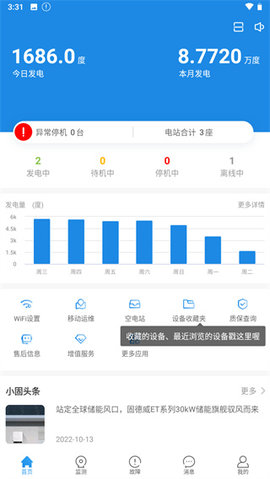 3、提供多种监控方式,包括PC端、移动端APP、微信公众号等,可随时随地查看电站的运行情况。
