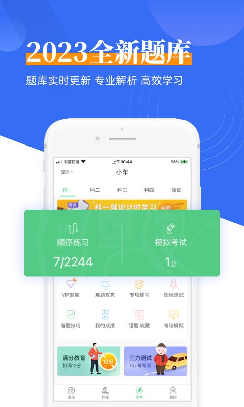 2、支持各科目的模拟考试,提供详细的成绩分析和解析;
