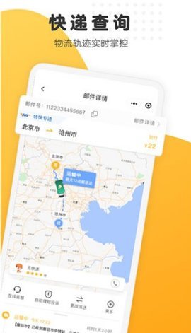 1、便捷的取件方式:提供上门取件、自助柜取件、区域代收等多种快递取件方式,用户可以根据自己的需求选择。