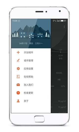 支持预警、小时预报、桌面插件、通知栏、多城市、天气分享&提醒