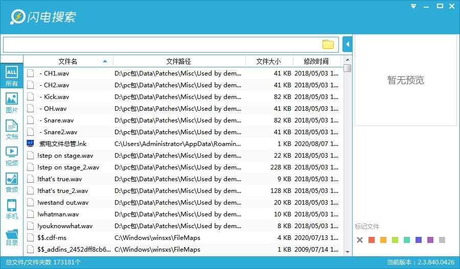 闪电搜索是款毫秒级本地文件搜索工具。能够在毫秒之间为您找到想要的文件。它不仅性能超群,同时提供美观简洁的界面,方便的文件分类,独有的文件预览以及文件标签,致力于不断为用户提供更好的使用体验,更强的搜索和管理功能。同时它不仅性能超群,同时提供美观简洁的界面,方便的文件分类,独有的文件预览以及文件标签,致力于不断为用户提供更好的使用体验,更强的搜索和管理功能。