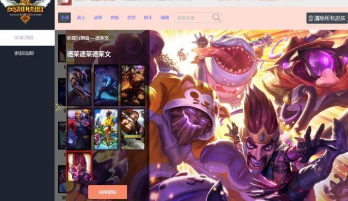 lol换肤大师手机版游戏英雄饱满肌肤特效体验,细分类方便选择
