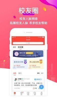 校友邦app最新版是一款以校友为主的社会求职工作,在这里方便于实践和就业服务,在这里拓开自己的校友人脉,可以寻找校友帮助,分享自己的职场实战中点滴,多了解过来的经验和见解,实习之路更不会寂寞。