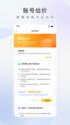 螃蟹账号代售平台是一款可以免费估价的游戏交易平台,这里为用户提供了最安全可靠的账号交易服务,无论是哪种游戏账号都可以交易,一旦找回包赔,而且还有各种游戏优惠等你哦,喜欢的快来下载吧!
