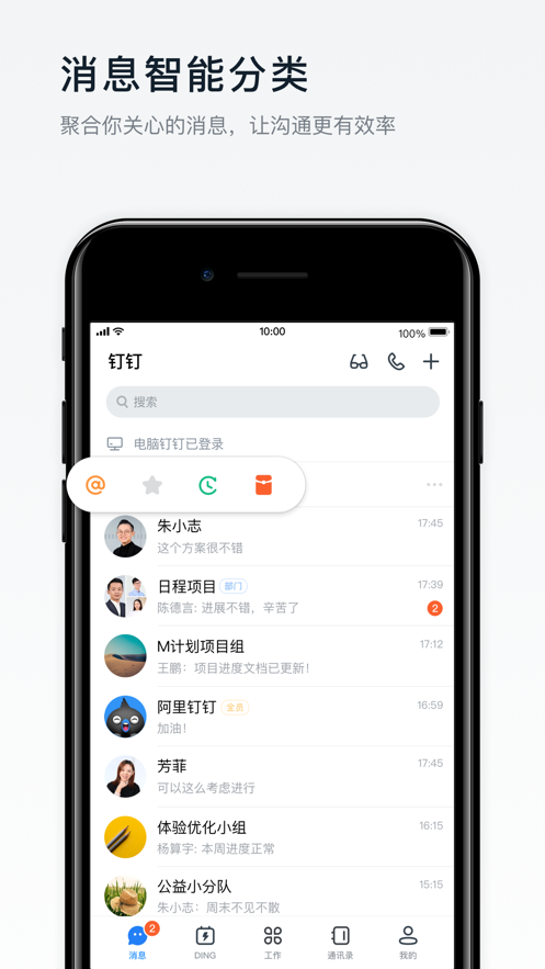 钉钉app官方版专为办公人士打造的线上办公软件,强大的隐私功能维护用户的合法权益,也无需担心自己的信息泄露,各种办公工具应有尽有,文件也可以线上进行编辑操作,满足了大部分办公用户的使用需求,欢迎感兴趣的用户前来下载体验。