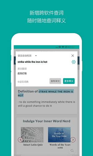 权威英汉双解词典,支持本地词库查询及网络查询。本地词库包含海量中英常用词汇,不用联网也能轻松查词!
