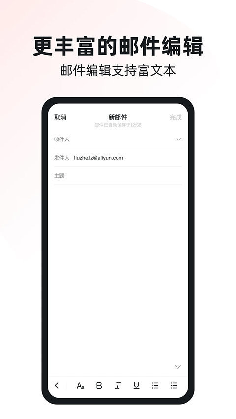 阿里云邮箱个人版即阿里邮箱,一款绿色安全的邮箱软件,支持同时管理多个邮箱账号,随时都可以轻松收发各种邮件,还提供了找回功能,轻松将误删邮件找回,有需要的快来下载吧!