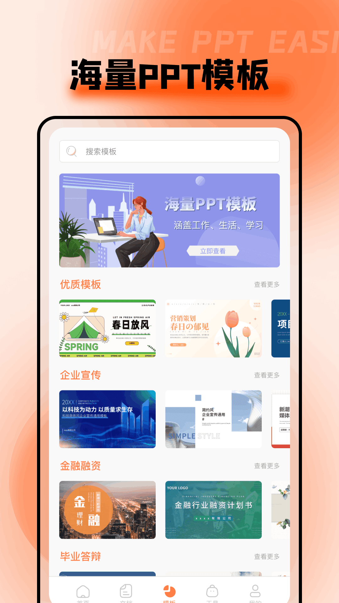 ppt超级市场是一款办公必备的ppt软件,这里收录了全网各种ppt资源,各种风格的模板任你免费使用,轻松解决各种办公事情,而且还为用户提供了大量ppt教程和素材,有需要的快来下载吧!