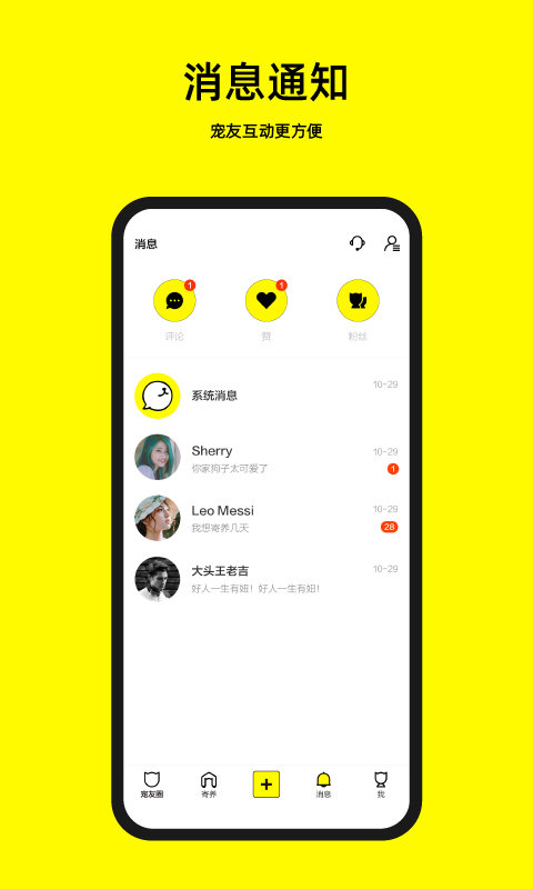 晒宠物萌照,宠物图片、视频,分享宠物养成成长日志,记录你和萌宠的故事,宠友圈可以看见用户发布的动态,关注并点赞留言喜欢的用户,增加互动;还可以赚取积分换礼品。自定义宠音号、宠物头像,随时更换信息更方便。